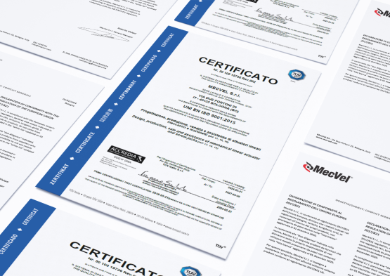 MecVel products are designed, developed and assembled in Italy. The raw materials and the components used in the actuators' manufacturing are high ends they comply with Europen standards.